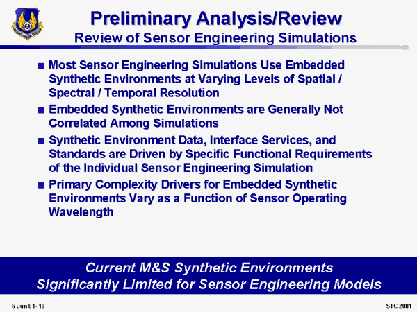 Preliminary Analysis/Review Review of Sensor Engineering Simulations |