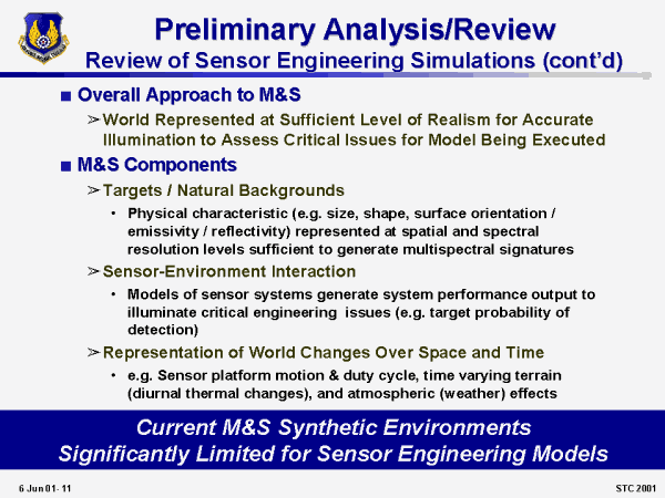Preliminary Analysis/Review Review of Sensor Engineering Simulations (cont’d) |