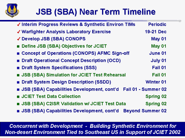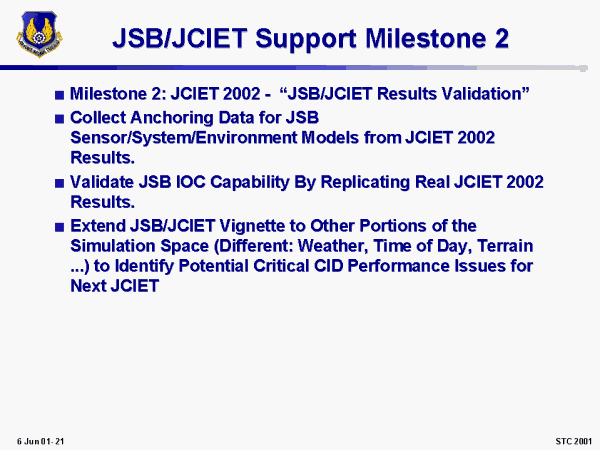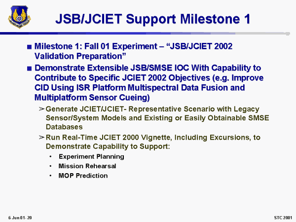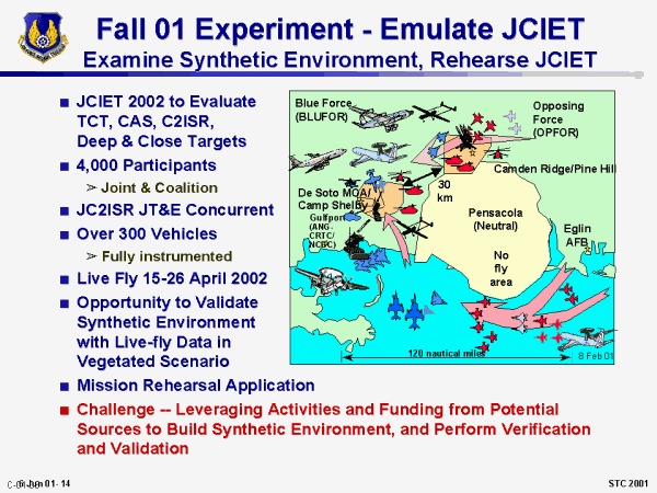 Fall 01 Experiment - Emulate JCIETExamine Synthetic Environment, Rehearse JCIET |